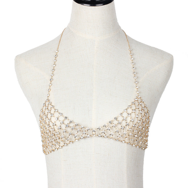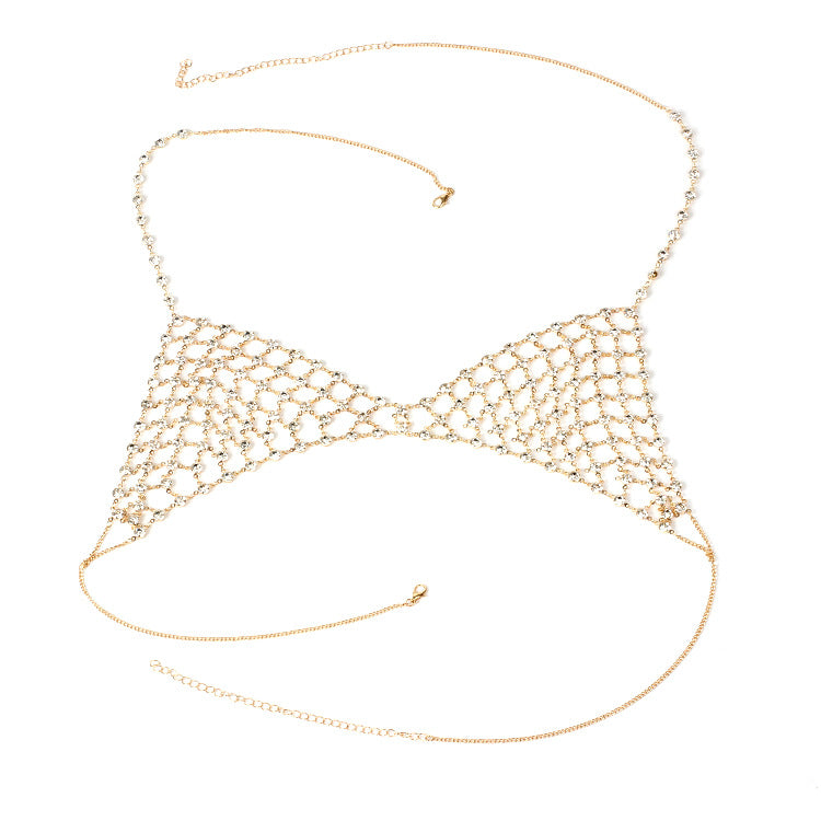 Fringed rhinestone multi-layer body chain Creative personality jewelry mesh chest chain chain