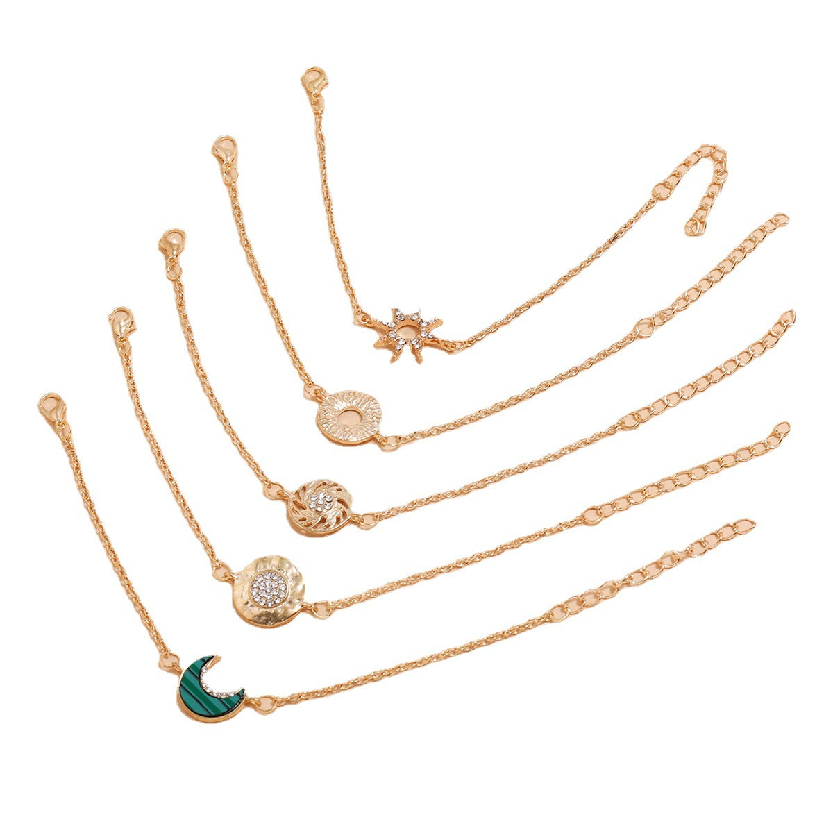 Hollow Out Octagonal Moon Gold Bracelet For Women, 5-piece Set