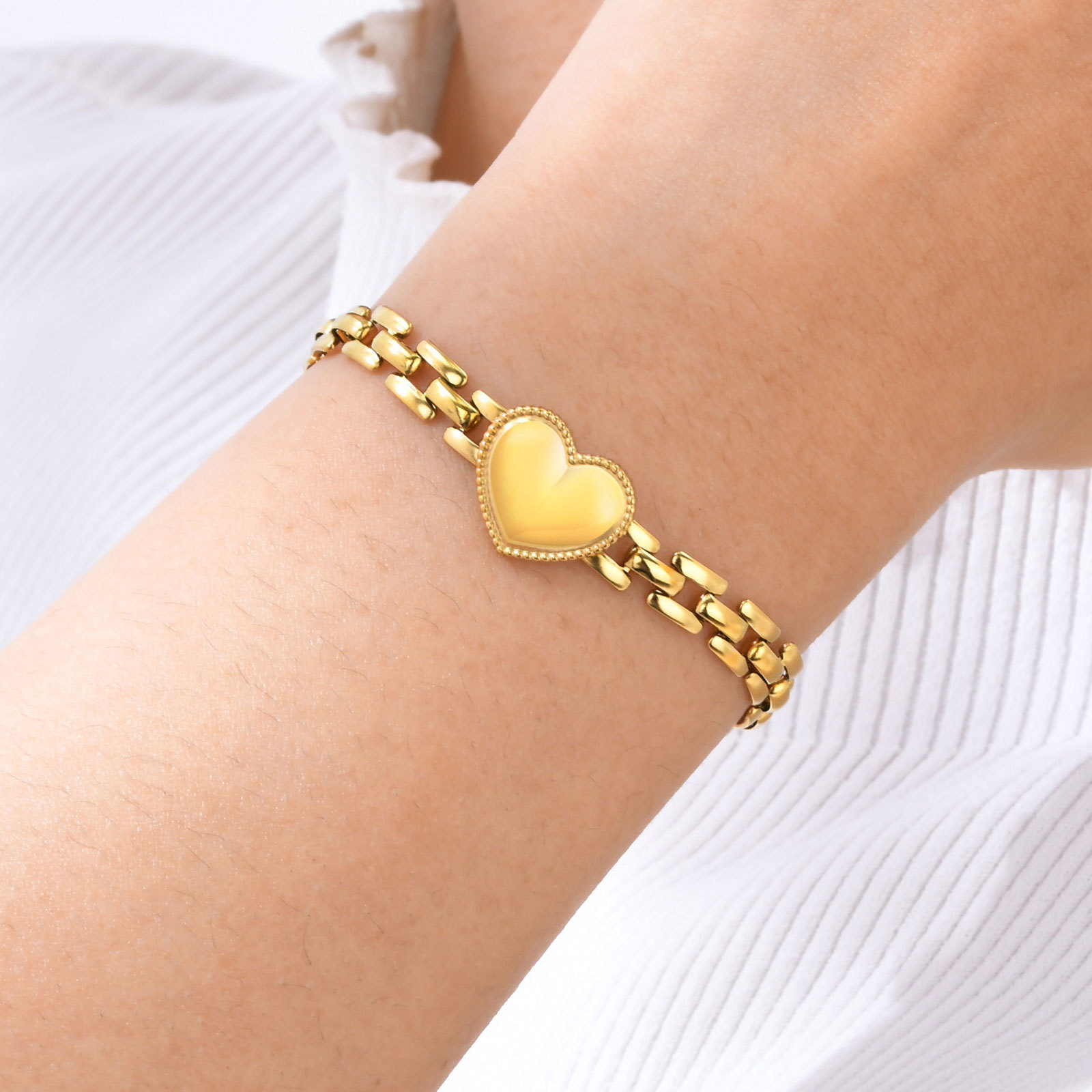 Stainless Steel Heart Strap Chain Gold Fashion Bracelet For Women