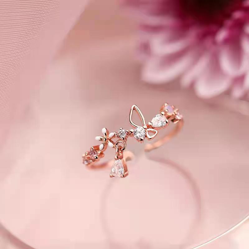 Womens Butterfly-Shape Fashionable And Personalized Rose Gold Ring