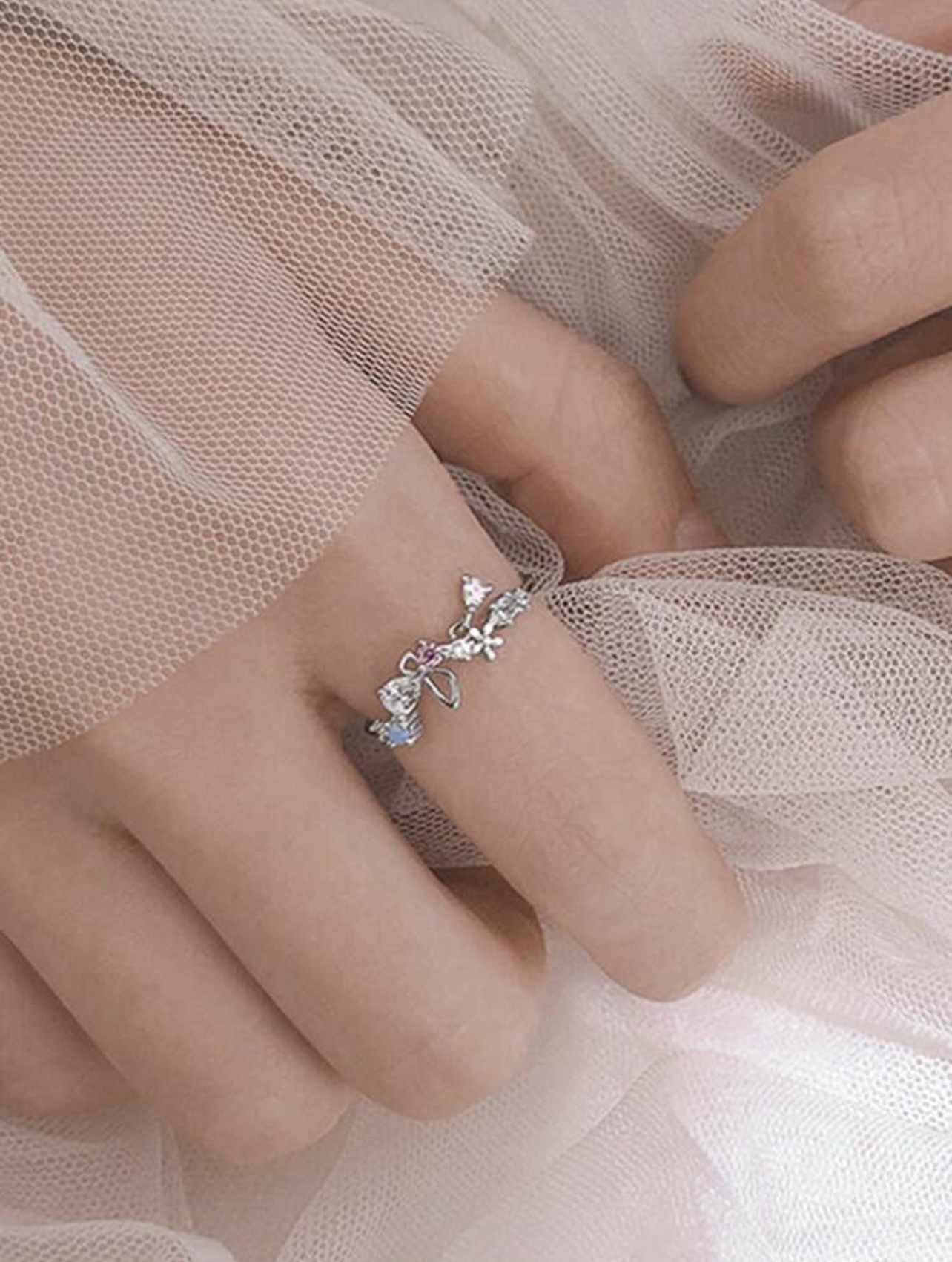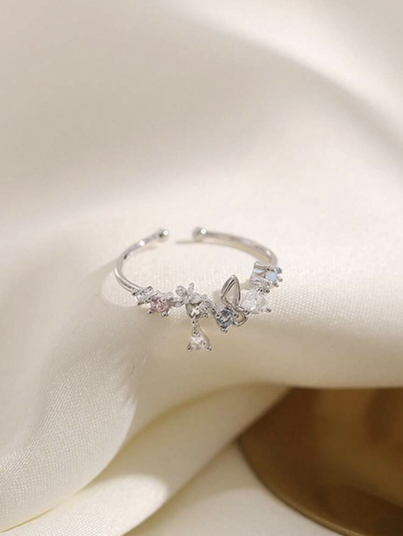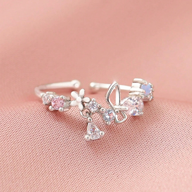 Colors: Rose Gold Butterfly Heart Flower Ring, Silver Butterfly Heart Flower Ring